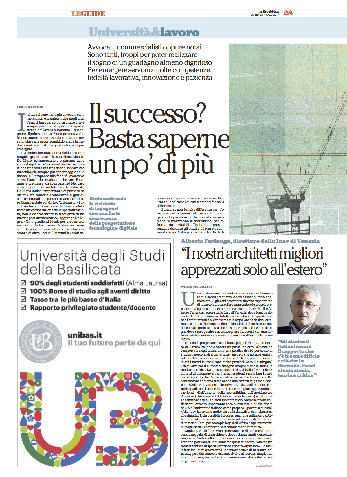 …Il discorso non è molto differente per i futuri avvocati. «Innanzitutto occorre interrogarsi sulla passione del diritto: se la materia piace, si troveranno le motivazioni per affrontare le inevitabili difficoltà che si presenteranno durante gli studi e il lavoro», commenta Guido Callegari dello studio De Berti Jacchia Franchini Forlani….
