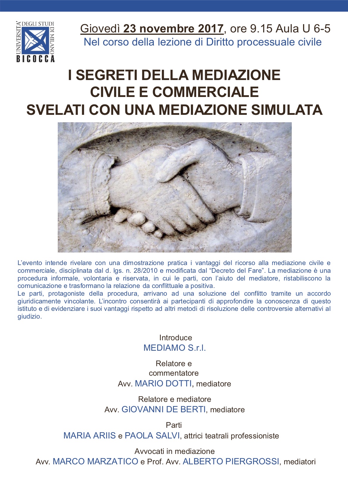 I SEGRETI DELLA MEDIAZIONE CIVILE E COMMERCIALE SVELATI CON UNA MEDIAZIONE SIMULATA – Milan, November 23th, 2017