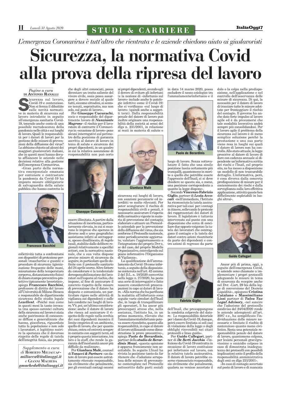 Per Guido Callegari, partner di De Berti Jacchia «l’infezione da Covid-19 contratta in occasione di lavoro costituisce poi infortunio sul lavoro, con la relativa tutela assicurativa. Il datore di lavoro potrebbe esserne riconosciuto responsabile, sia civilmente che penalmente, qualora ne venisse accertato il…»