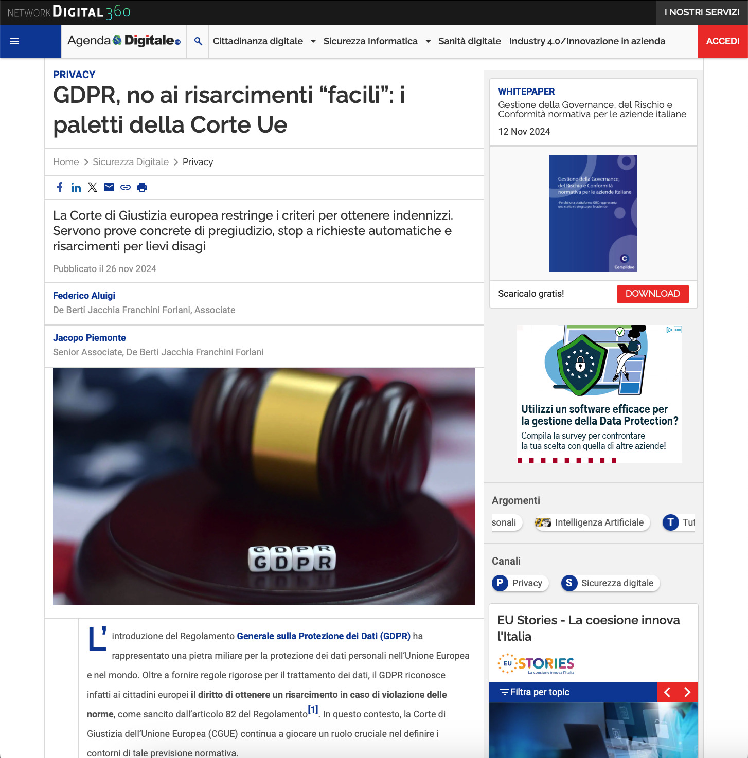 Articolo di Jacopo Piemonte e Federico Aluigi pubblicato su Agenda Digitale.